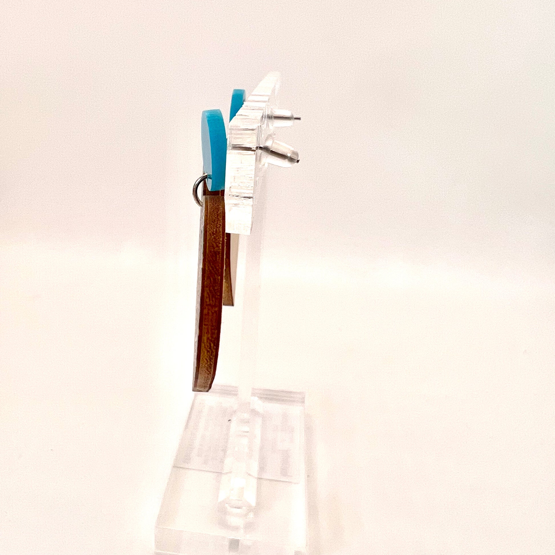 These earrings are made of wood with metal hooks.