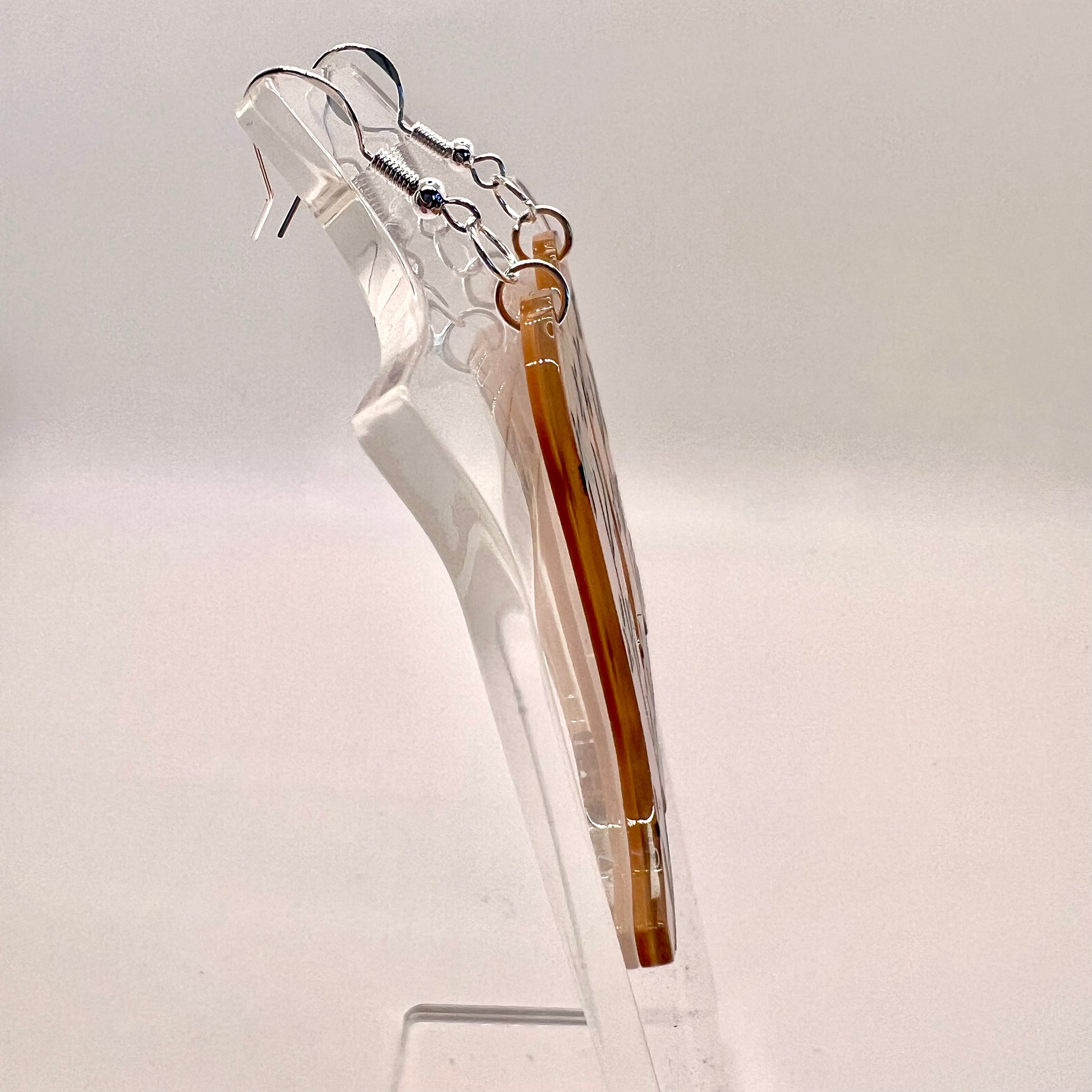 These earrings are made of plastic with metal hooks.