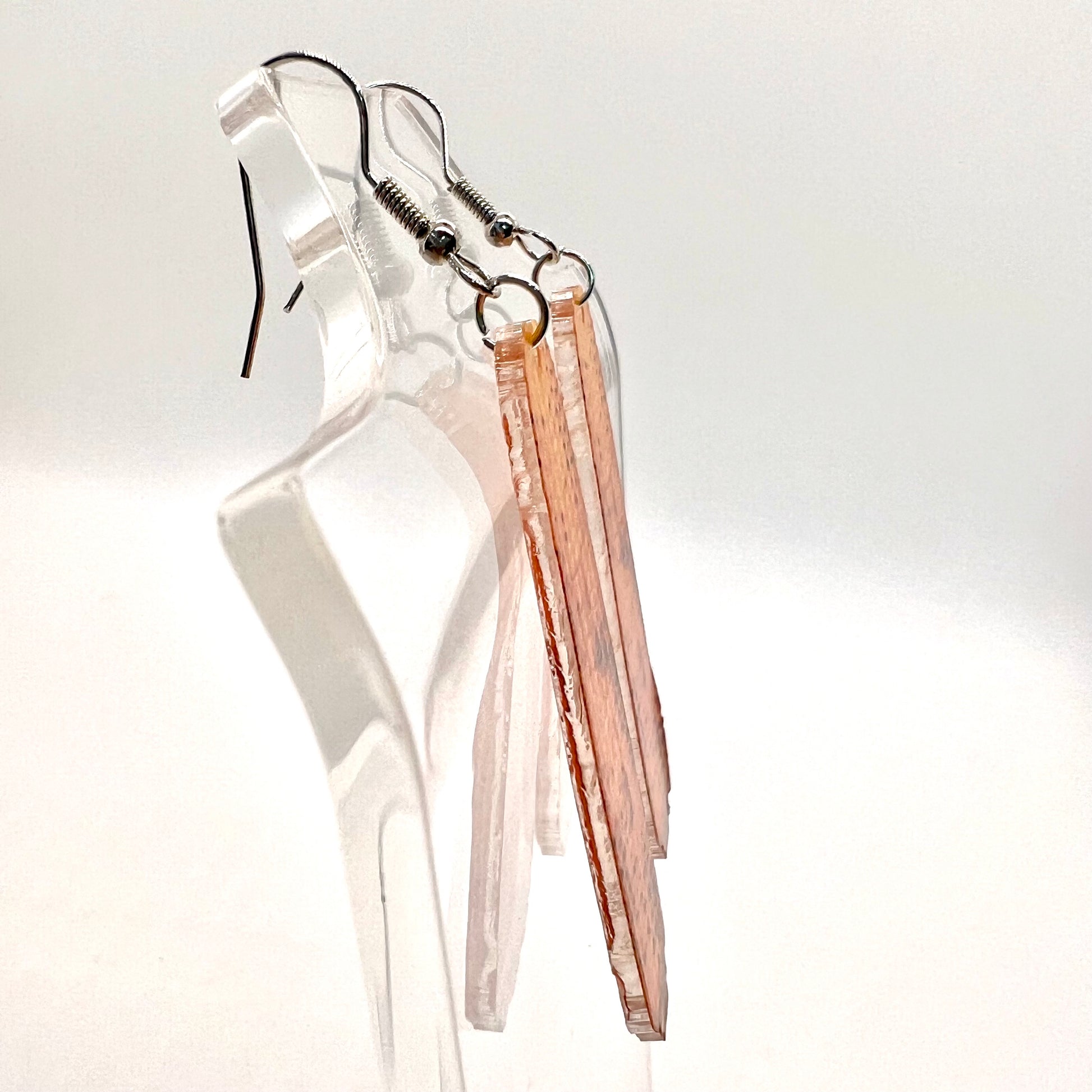 These earrings are made of acrylic with metal hooks.