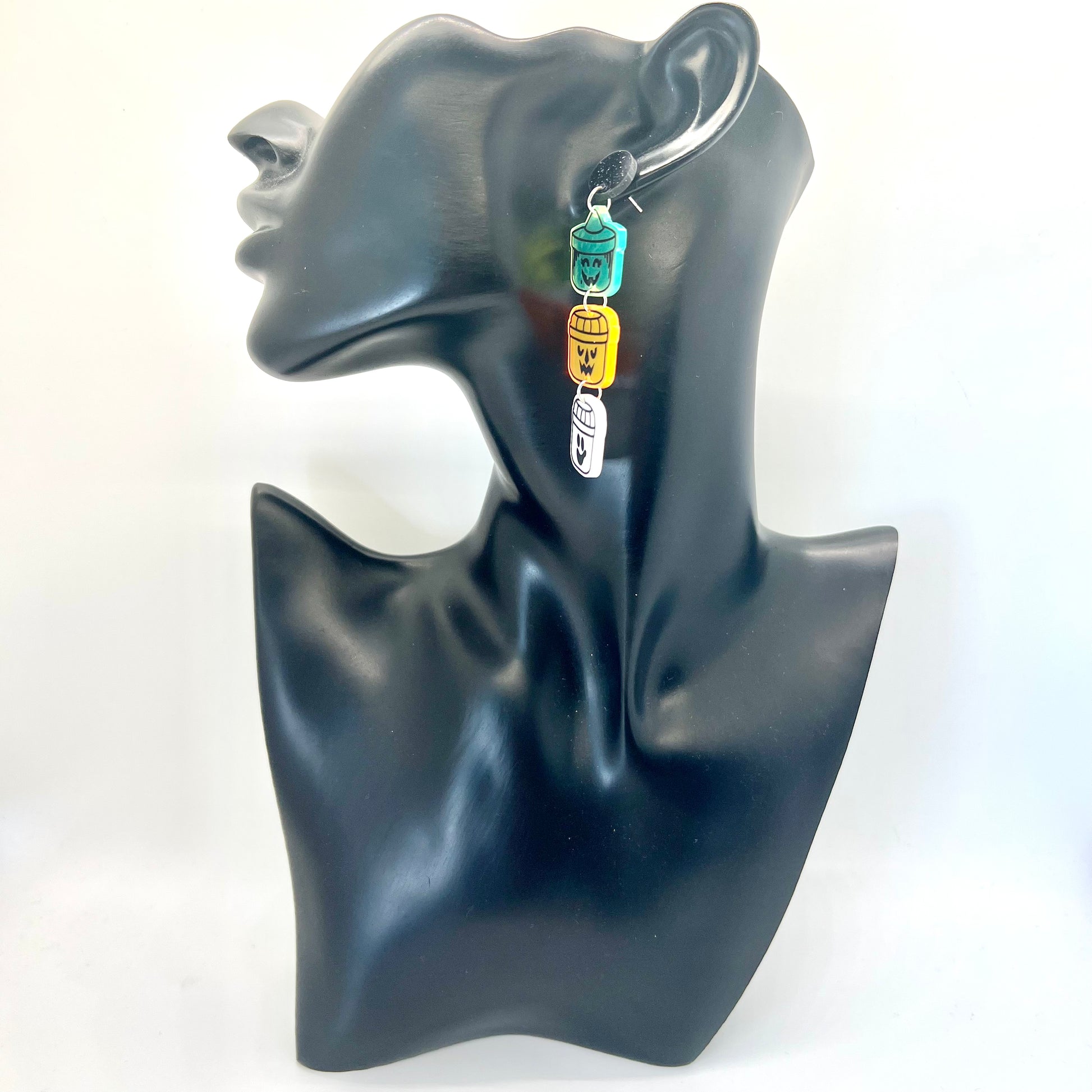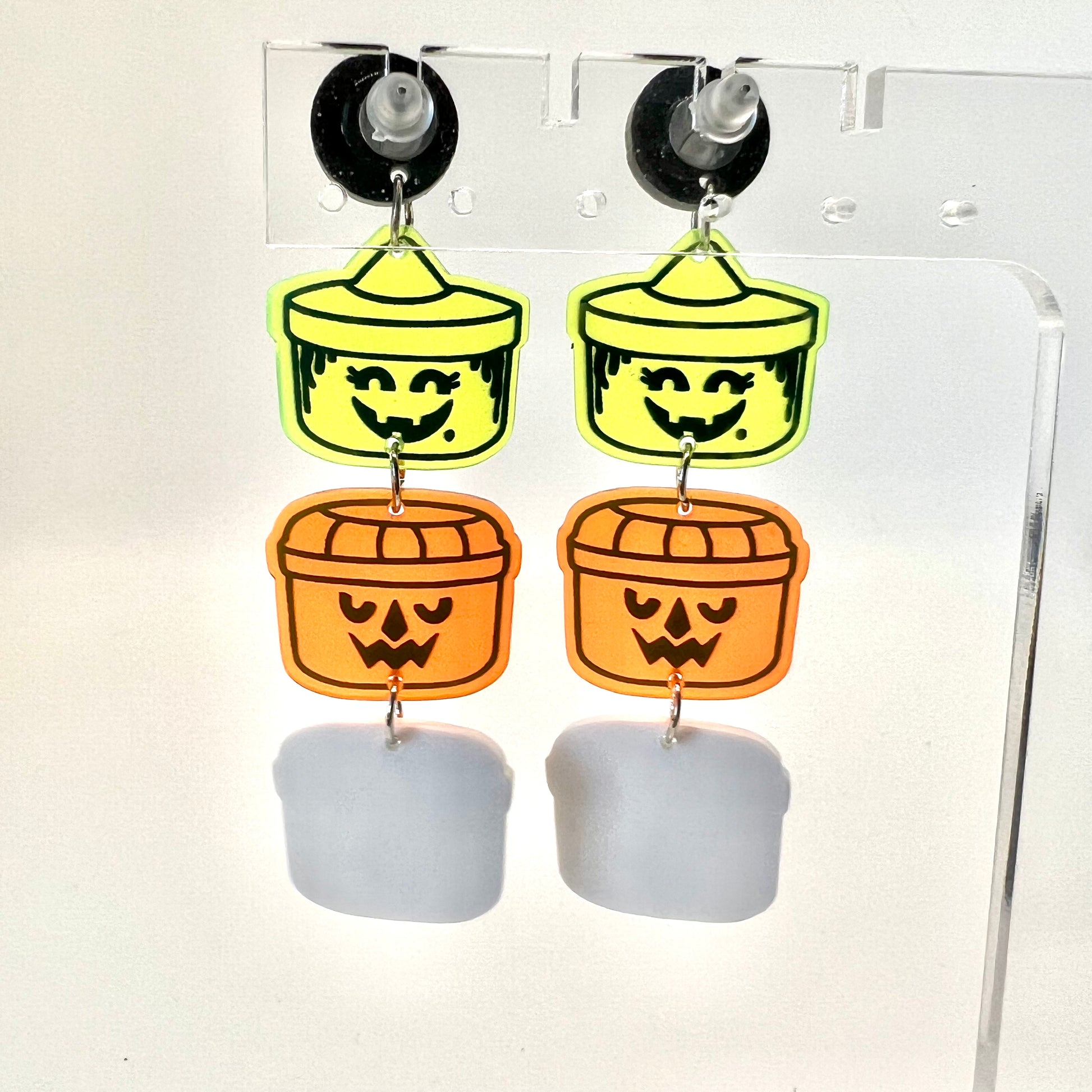 These earrings are made of acrylic with metal hooks.