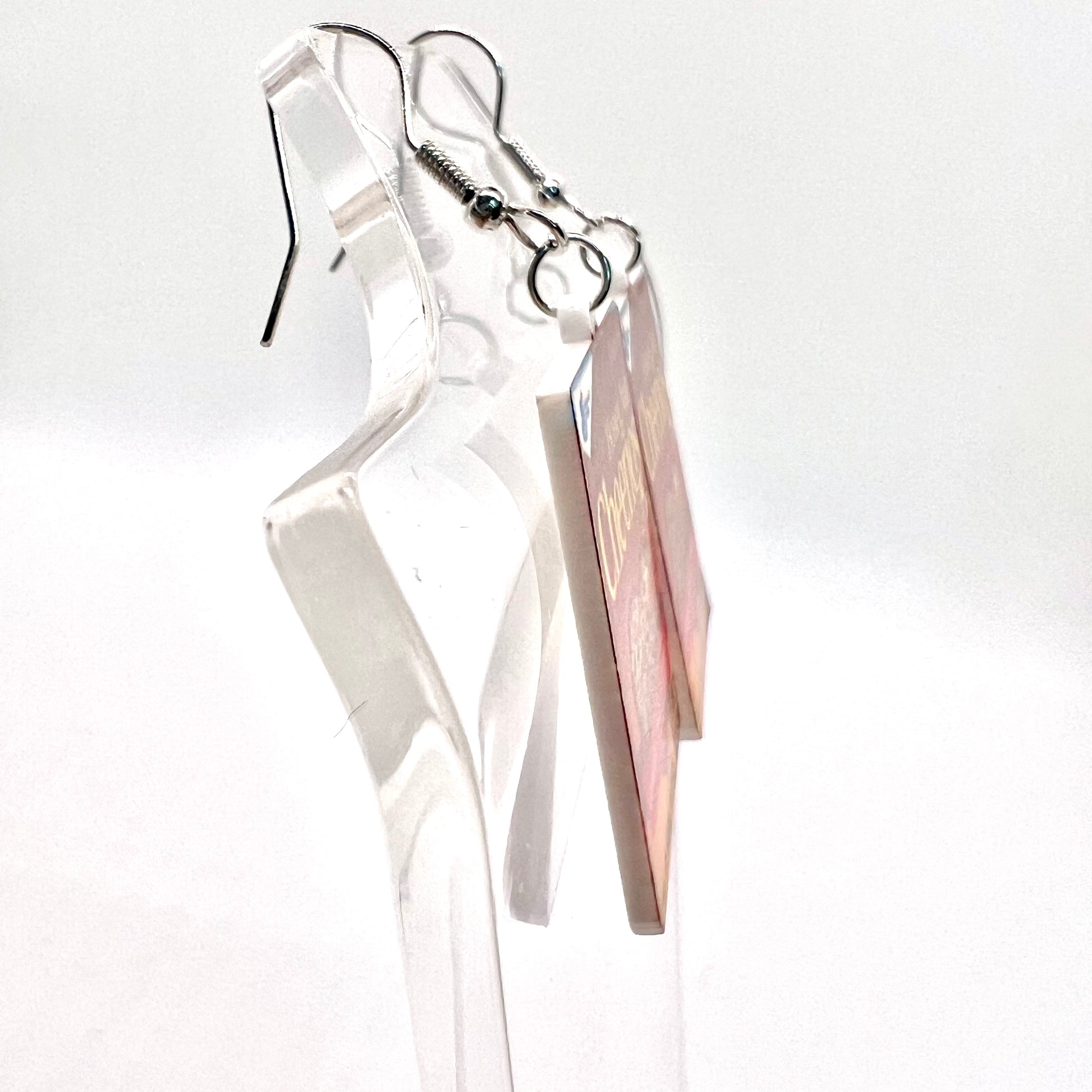 These earrings are made of acrylic with metal hooks.