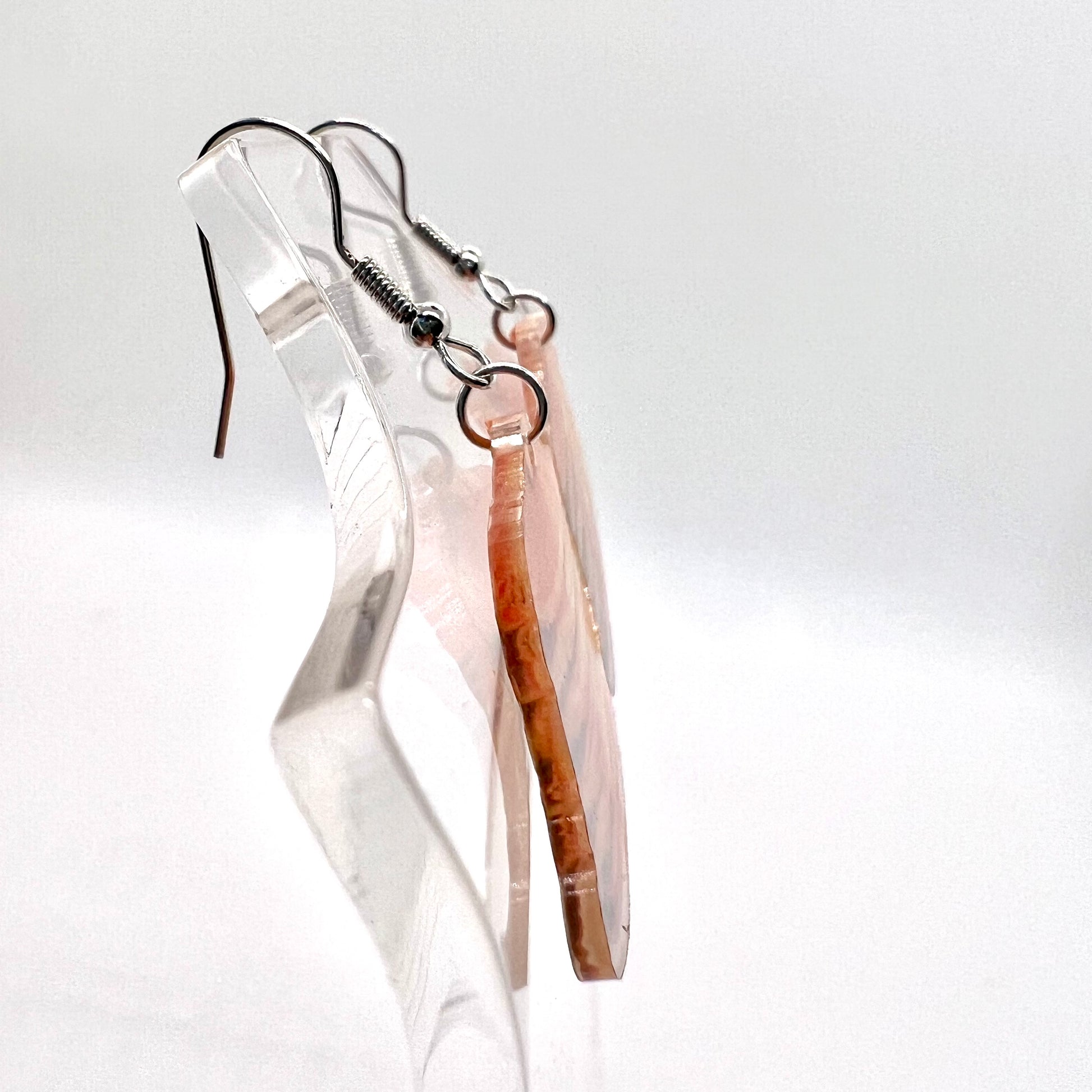 These earrings are made of acrylic with metal hooks.