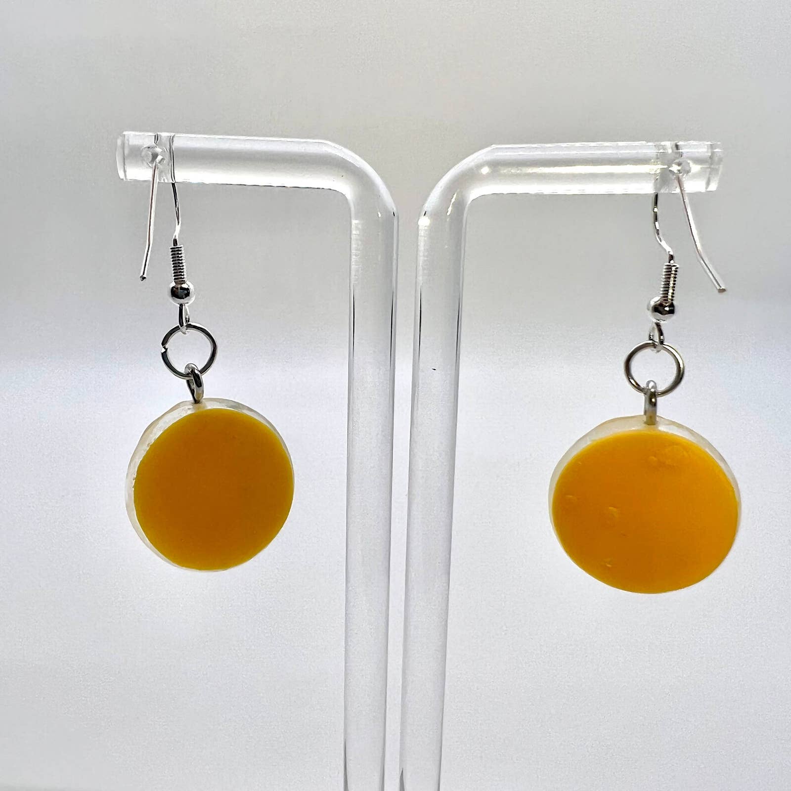 These earrings are made of plastic with metal hooks.