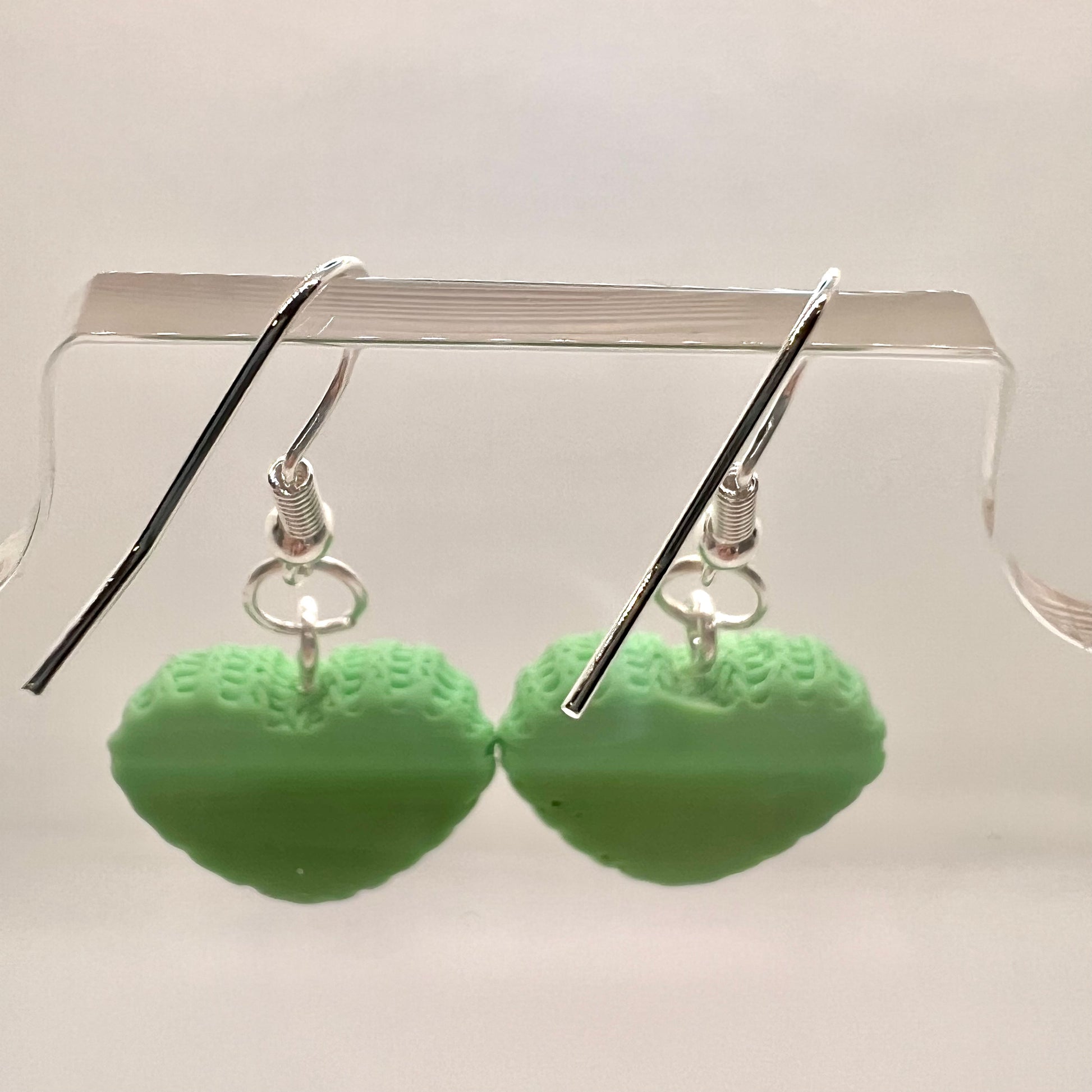 These earrings are made of clay with metal hooks.